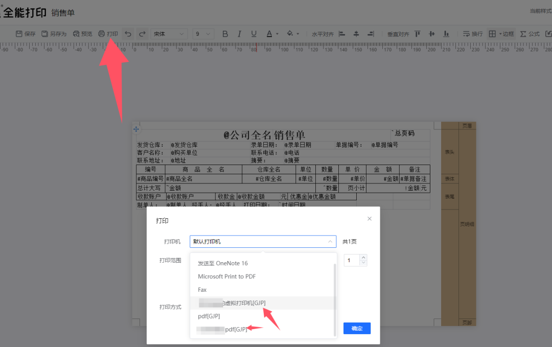 3、要打印单据的电脑在打印时打印机选择【GJP】字样的打印机进行打印。